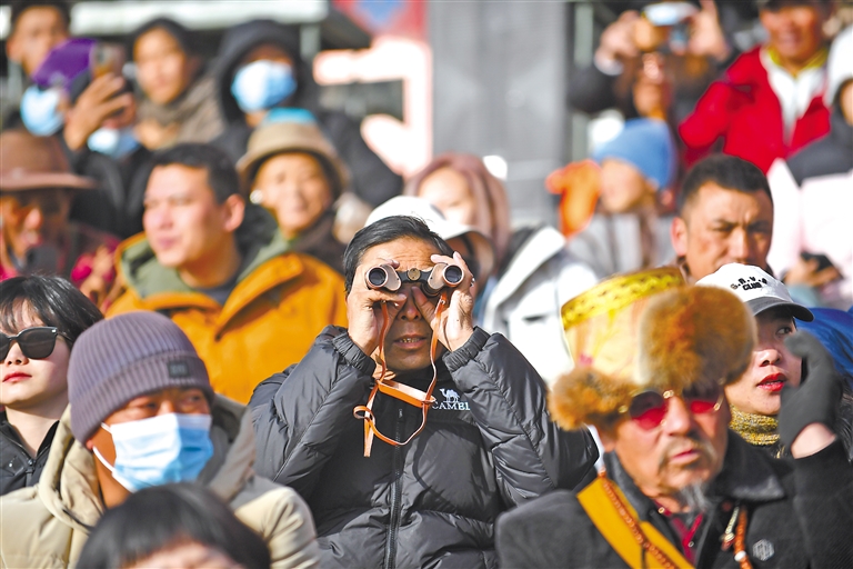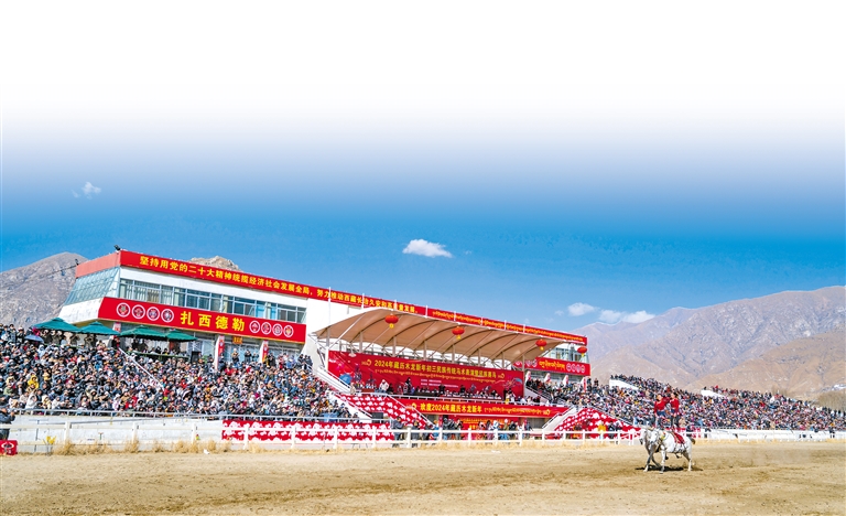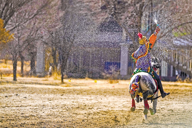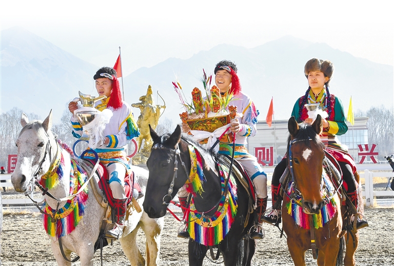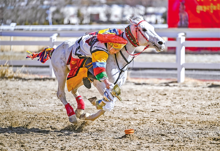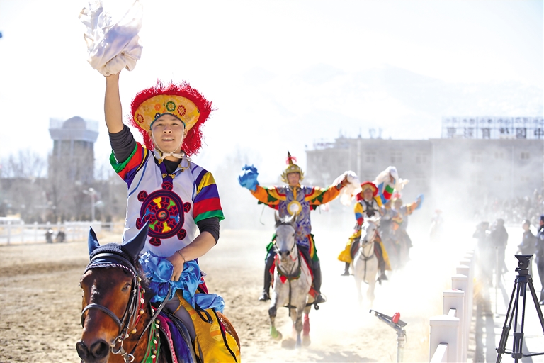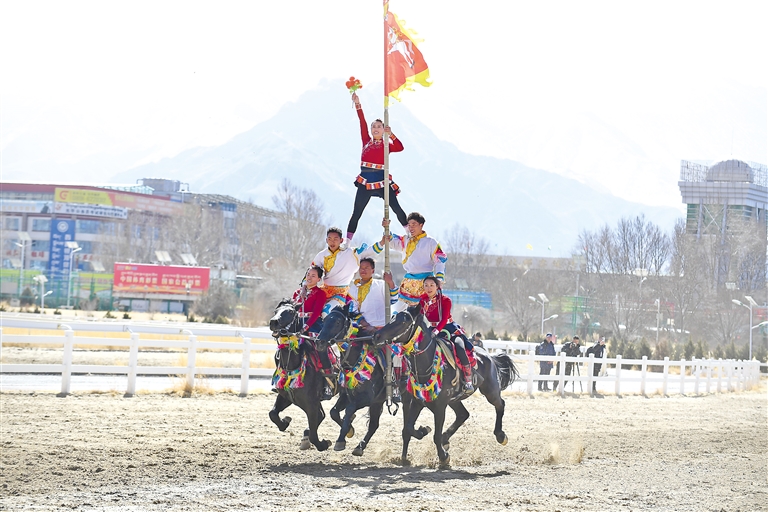 2月12日藏历新年初三,主题为“体育大拜年,健康迎新春”的民族传统马术表演暨民族赛马活动在拉萨赛马场举行。