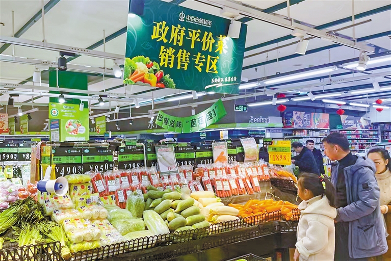 为积极应对近期雨雪冰冻天气影响,确保武汉市春节期间蔬菜市场价格平稳,保障市民基本生活需求,2月8日至2月12日期间,武汉市政府部署在武商、中百、中商三大商超130余家门店设置政府平价菜销售专区,销售大白菜、包菜、白萝卜、胡萝卜、土豆5种蔬菜。