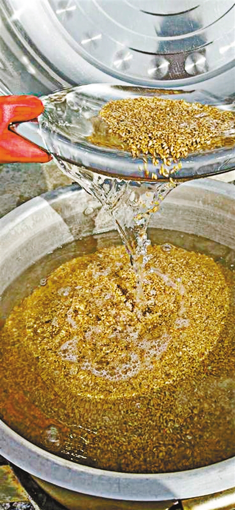 “青稞酒酿造并没有复杂的程序,在老家,几乎家家户户都能制作。酿造前,首先要选出颗粒饱满、富有光泽的上等青稞,淘洗干净,将其放在大平底锅中加水烧煮两小时,然后将煮熟的青稞捞出,晾去水分,把发酵曲饼研成粉末均匀地撒上并搅动,最后装进坛子,密封贮存。”拉巴介绍,为了保证原材料青稞的品质,他通常收购本村和周边村子老百姓种植的优质青稞。现在,合作社带动了7人就业,人均月收入4500元左右。