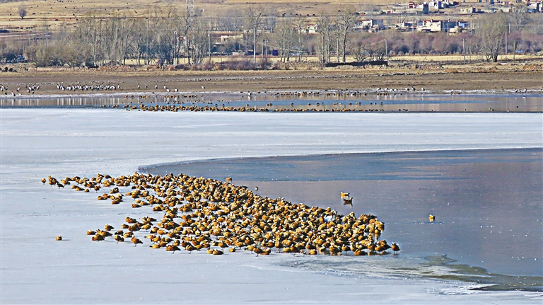 图为在林周县卡孜水库越冬的水鸟。图片由自治区林业调查规划研究院提供