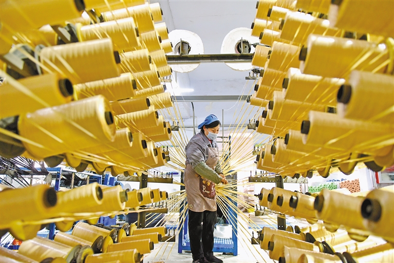 春节假期过后,各地企业纷纷开工生产,呈现一派繁忙景象。图为2月19日,工人在山东省淄博市沂源县悦庄工业园一新材料企业的生产线上忙碌。新华社发(赵东山 摄)