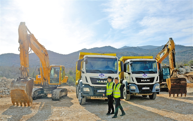 图为2月19日,在克罗地亚斯普利特拍摄的武切维察道路连接线项目工地。新华社记者 李学军 摄