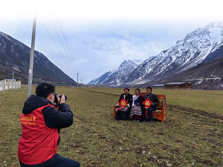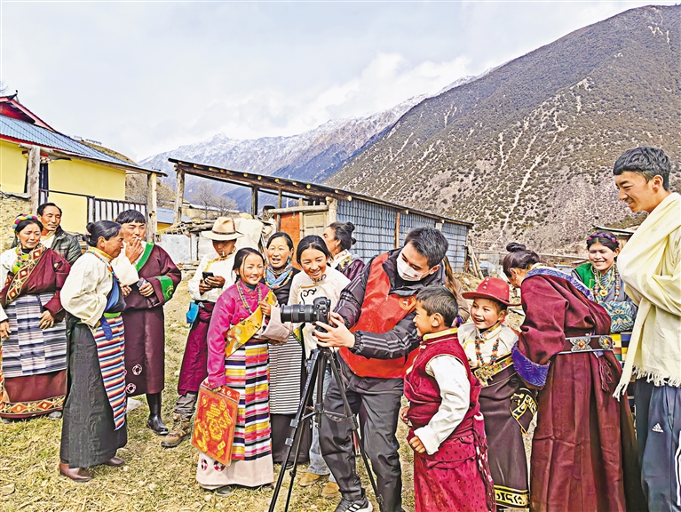 春节、藏历新年长假期间,察隅县新时代文明实践中心联合县文联摄影家协会到古玉乡开展“文化进万家 温暖全家福”志愿服务活动,为群众送上了一份别样的新年礼物。图为古玉乡群众围着相机争相查看自己的新年照。