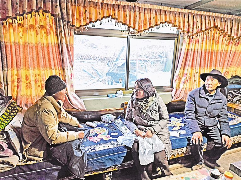 近日,拉萨市曲水县南木乡慰问组走进脱贫监测户家中,与群众深入交谈,关心了解他们的日常生活和收入等情况,鼓励脱贫监测户保持乐观积极的心态,遇到困难及时向乡村工作人员反映,并为监测户送去慰问金。 图为南木乡慰问组工作人员与脱贫监测户群众交谈。 本报记者 格桑伦珠 摄