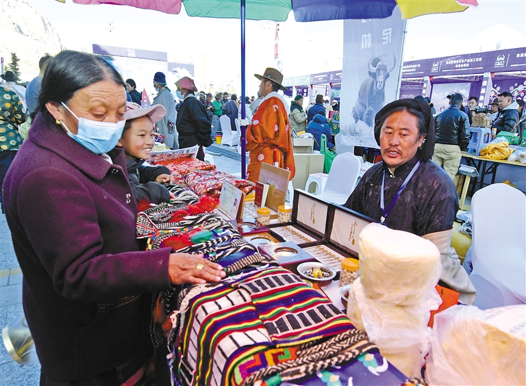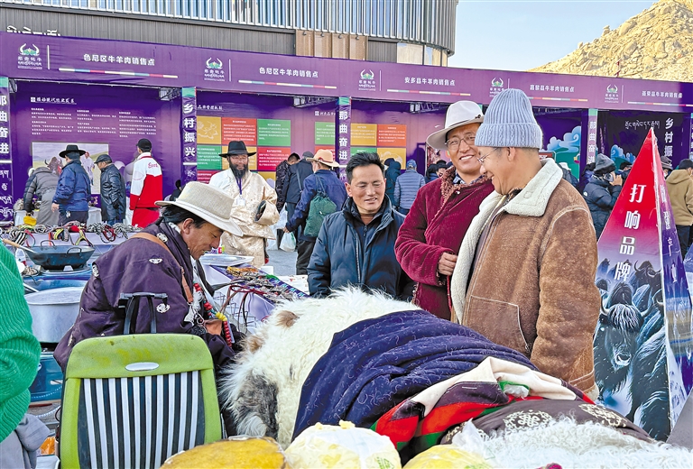 图为那曲市中部四县区域协作发展拉萨畜产品展销推介会现场。本报记者 王敏 摄