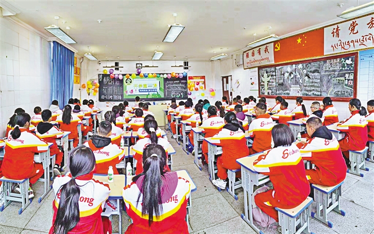 在林芝市第二小学,学校布置了喜庆的龙年装饰,教室文化墙装点一新,老师们分发起糖果、牛奶。温暖的“小惊喜”迅速调动起学生返校的好心情;波密县完全小学利用寒假对所有教室进行了粉刷、维修,对学生食堂进行了升级改造,干净、整洁的校园,让学生们格外激动……“今天很开心,见到了老师和同学,也见到了更美丽的校园。新的学期,我要继续做好班干部工作,取得更大的进步。”林芝市第二小学学生索朗次仁信心满满地说。