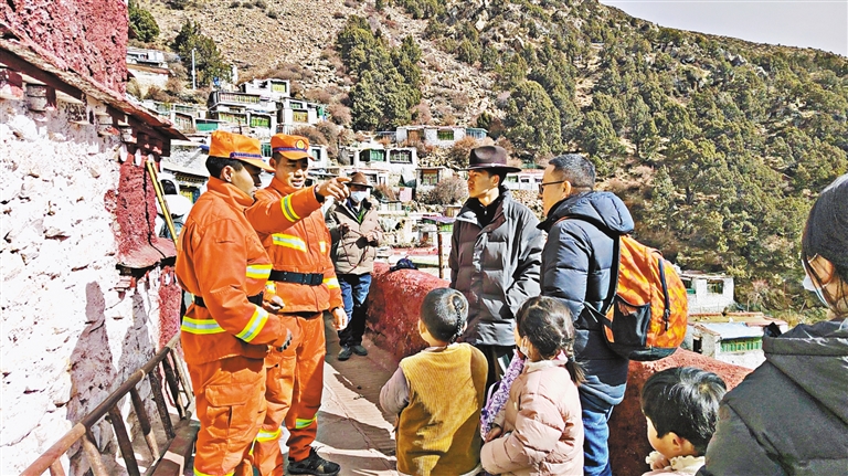 近日,拉萨市森林消防大队在林周县热振国家森林公园开展防火宣传与检查,为防火安全保驾护航。 图为拉萨市森林消防大队消防指战员在林周县热振国家森林公园对游客进行森林防火安全宣传。 本报记者 格桑伦珠 摄