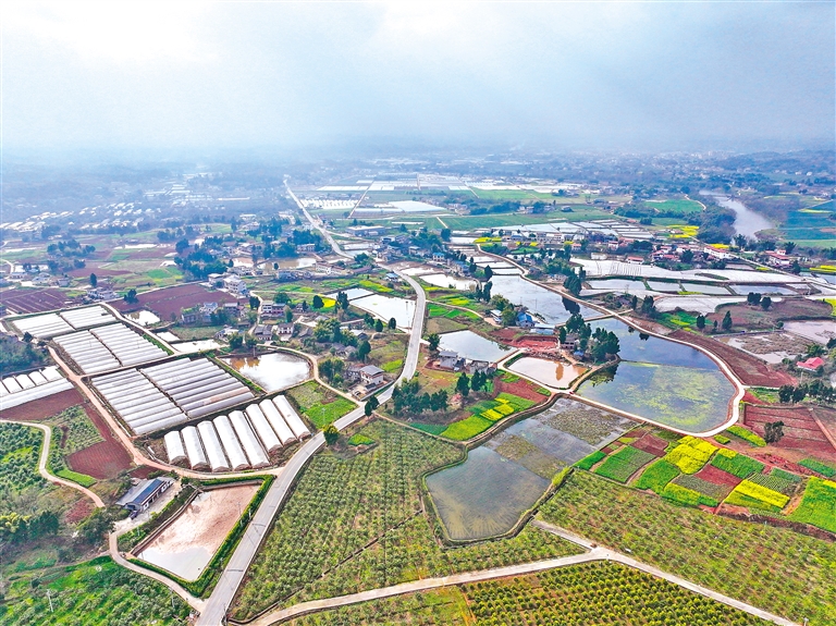 初春时节,重庆市潼南区柏梓镇一带春意盎然,一片生机勃勃的景象。 图为2月26日拍摄的重庆市潼南区柏梓镇一带景象(无人机照片)。新华社记者 王全超 摄