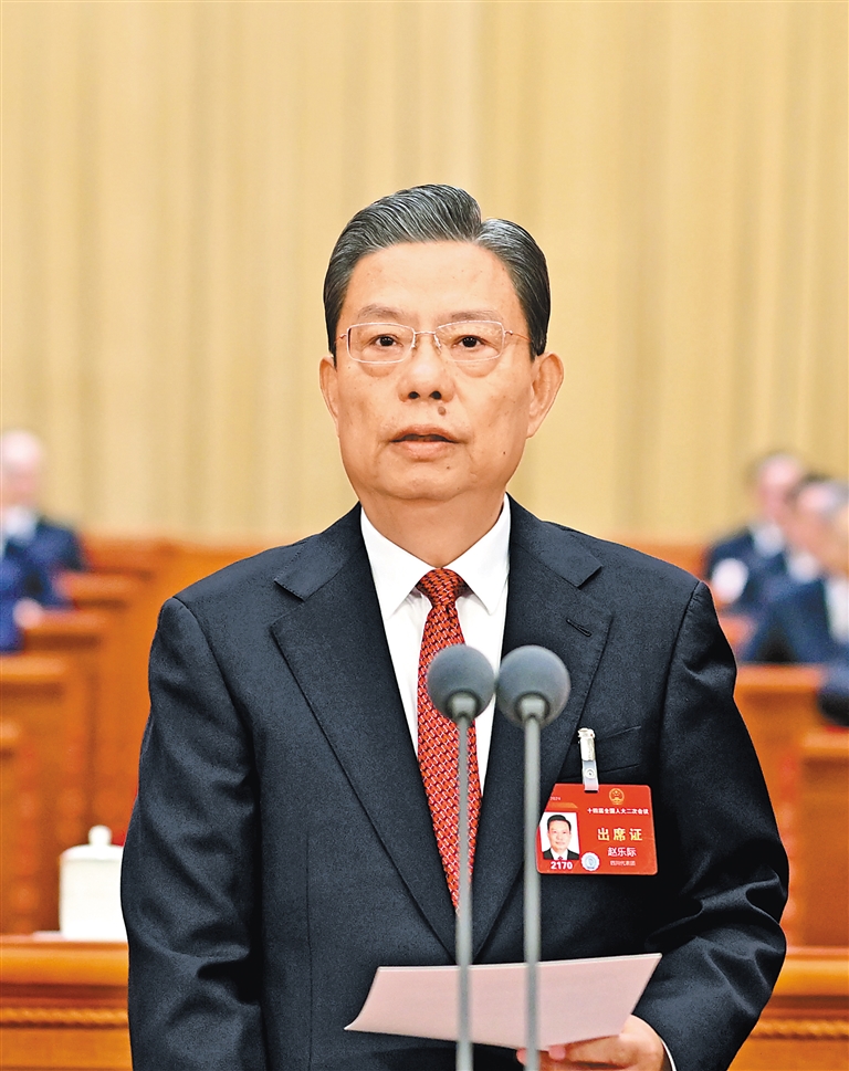 大会主席团常务主席、执行主席赵乐际主持大会。大会主席团常务主席、执行主席李鸿忠、王东明、肖捷、郑建邦、丁仲礼、郝明金、蔡达峰、何维、武维华、铁凝、彭清华、张庆伟、洛桑江村、雪克来提·扎克尔、刘奇在主席台执行主席席就座。