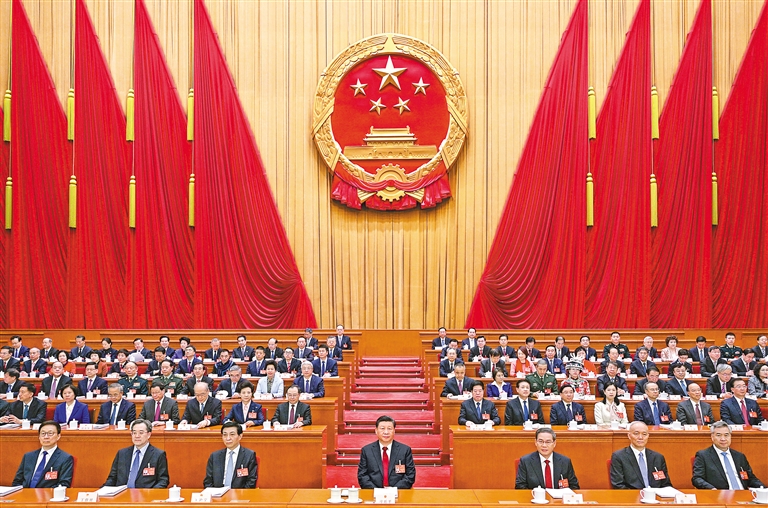 3月5日,第十四届全国人民代表大会第二次会议在北京人民大会堂开幕。党和国家领导人习近平、李强、王沪宁、蔡奇、丁薛祥、李希、韩正等出席大会。 新华社记者 李学仁 摄