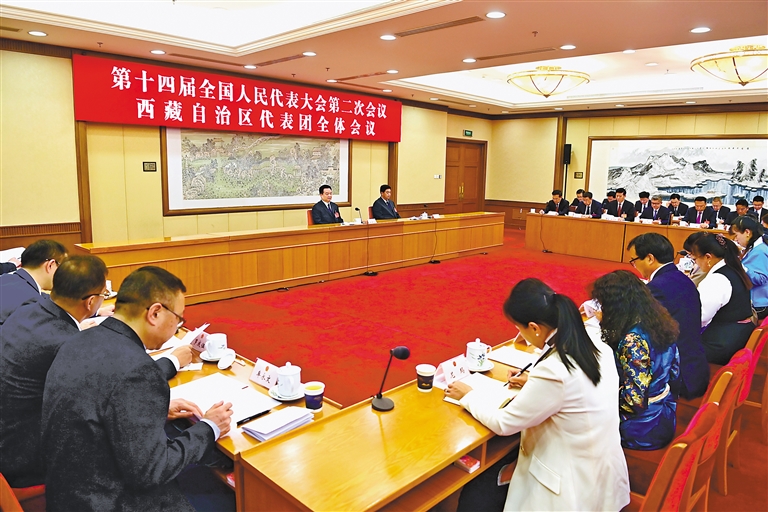 西藏代表团团长、自治区党委书记王君正,西藏代表团副团长、自治区主席严金海参加。