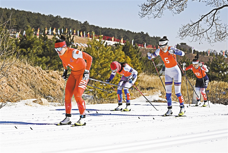 2月25日,在第十四届全国冬季运动会越野滑雪青年组女子个人短距离(传统技术)比赛中,黑龙江队选手靳然以3分44秒57的成绩夺得冠军,黑龙江队选手杨帆、李婕分获亚军、季军。