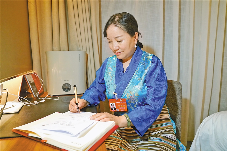 住藏全国政协委员明吉措姆。 本报记者 旦增旺姆 张思雨 摄