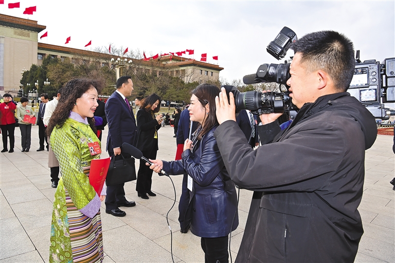图我区全国人大代表白玛措在接受区内媒体采访。