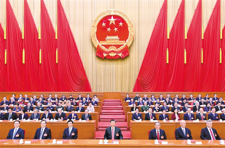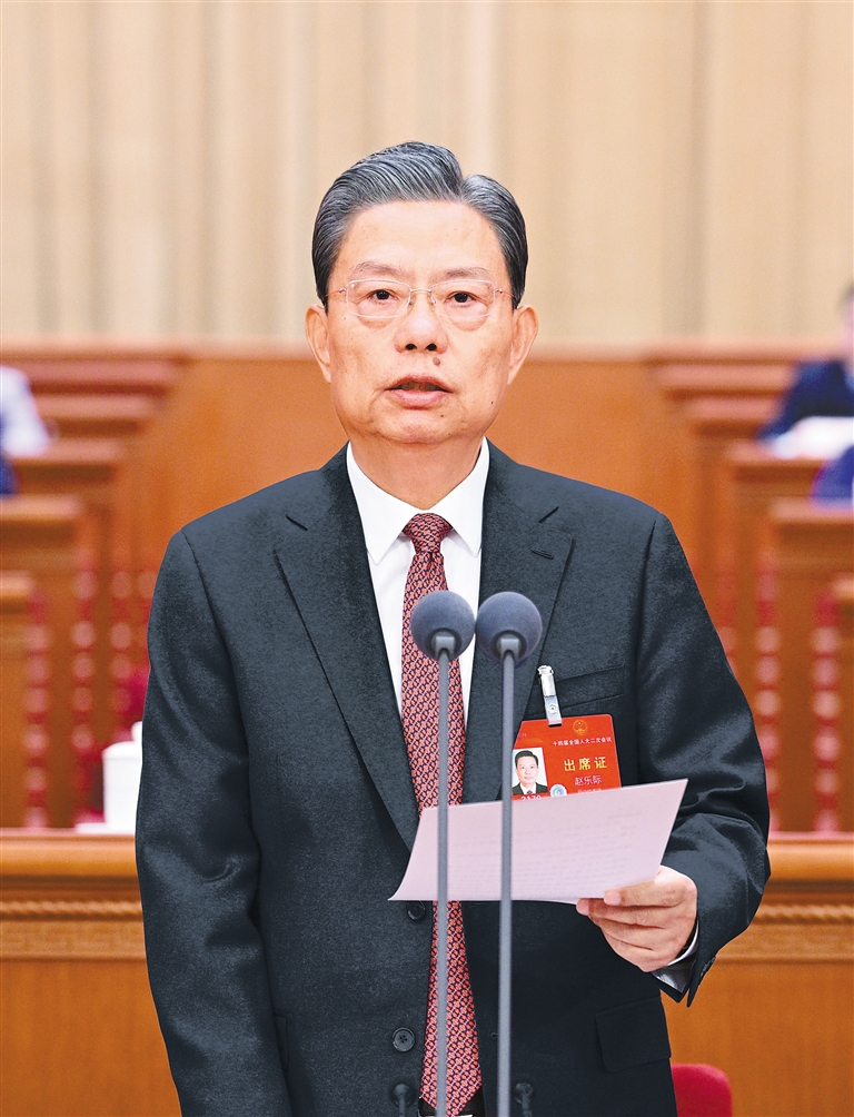 赵乐际指出,大会期间,代表们肩负党和人民重托,以饱满的政治热情和昂扬的精神状态依法履职尽责,认真审议各项报告和议案,会议成果充分体现了党的主张和人民意志的统一,彰显了全过程人民民主和国家根本政治制度的显著优势。