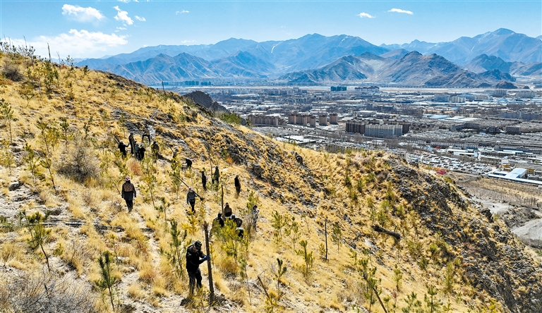 3月的拉萨,全民植树活动如火如荼,各族干部群众踊跃植绿、精心护绿,共同守护家门前的绿水青山。