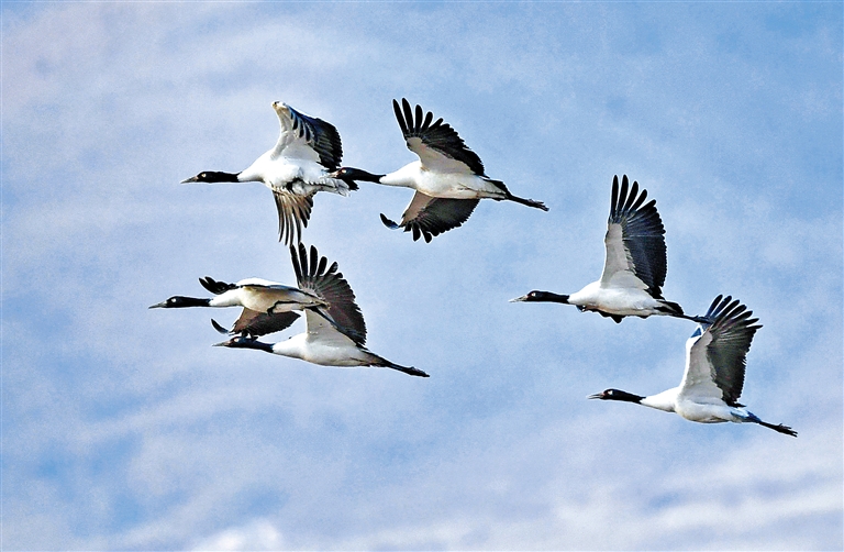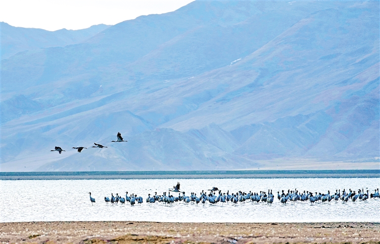 随着气候转暖,位于雅鲁藏布江中游河谷黑颈鹤国家级自然保护区内的西藏拉萨林周县虎头山水库渐渐喧闹起来,在此越冬的黑颈鹤开始春季迁徙,飞往色林错黑颈鹤国家级自然保护区、羌塘国家级自然保护区以及甘肃、青海等地。