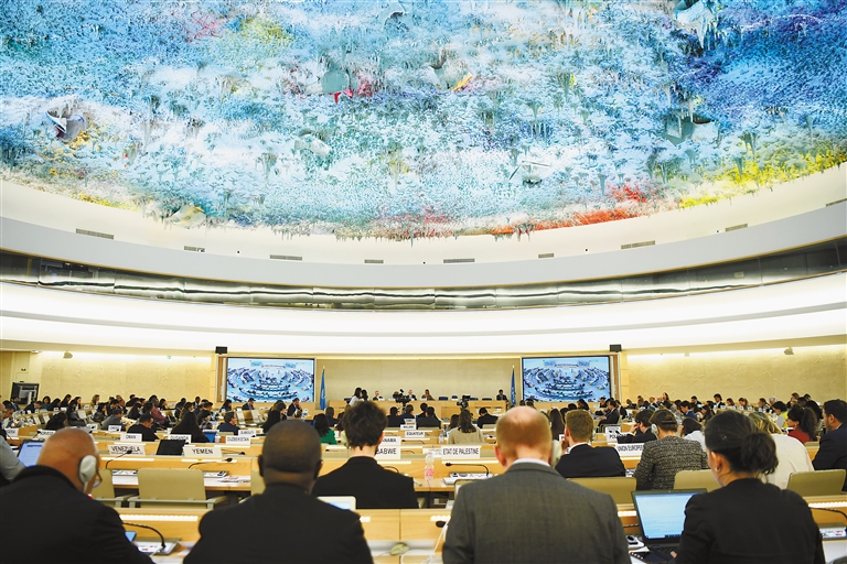 这是3月20日在瑞士日内瓦拍摄的联合国人权理事会第55届会议现场。新华社记者 连漪 摄