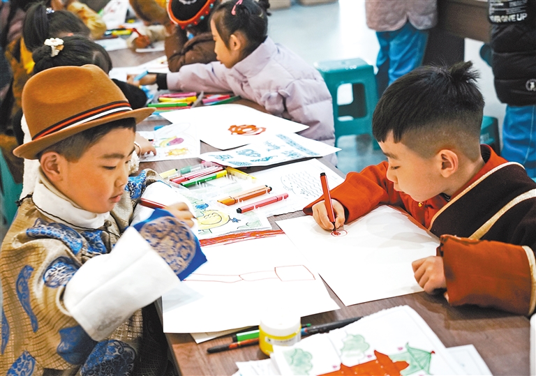 图为孩子们在展馆内绘画。本报记者 袁海霞 郑璐 本报通讯员 普珍 摄