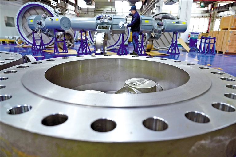 图为3月26日,在位于重庆市北碚区的一家调节阀公司,技术人员在进行产品质量检测。新华社发(秦廷富 摄)