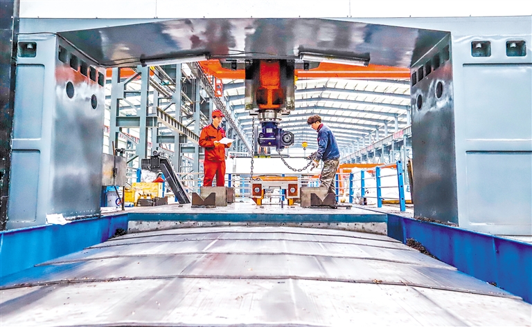 图为3月26日,工人在河北省遵化市经济开发区一家矿山装备制造企业组装车间工作。新华社发(刘满仓 摄)