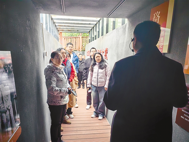 图为墨脱县委办党支部一行人参观墨脱解放发展历程“时光长廊”。本报记者 王珊 谢筱纯 摄
