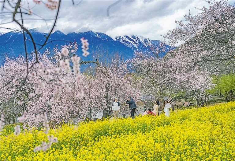 图为游客在林芝市巴宜区嘎拉村拍照留念。新华社记者 孙非 摄