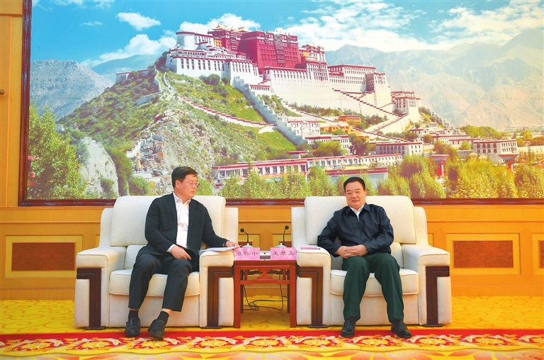 近日,自治区党委书记王君正会见了深圳市委副书记、市长覃伟中一行并座谈。 本报记者 旦增西旦 摄