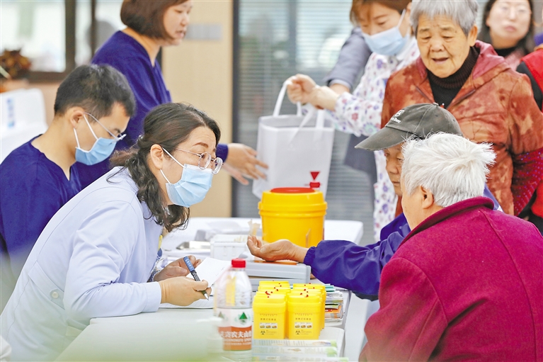 在浙江省嘉兴市南湖区新兴街道城南社区,海警医院医生为居民义诊。新华社发