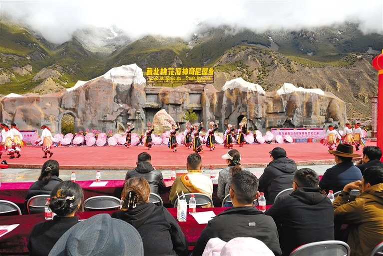 近日,尼屋乡第三届“乡村振兴 那曲奋进”活动成果展暨那曲市嘉黎县尼屋乡第九届桃花文艺汇演活动举办,来自全国各地的游客与当地群众一起观看表演,现场气氛热烈。