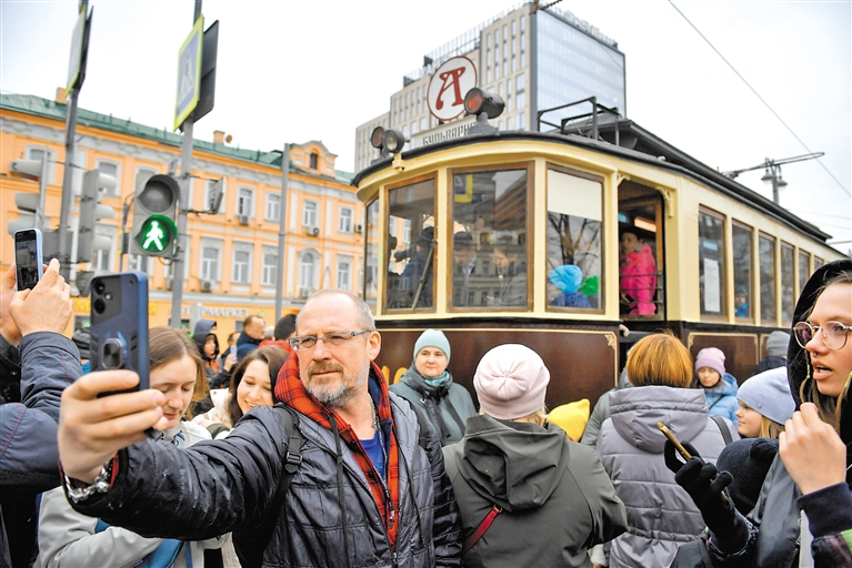 4月6日,莫斯科举行有轨电车游行活动,纪念有轨电车在莫斯科运行125周年。