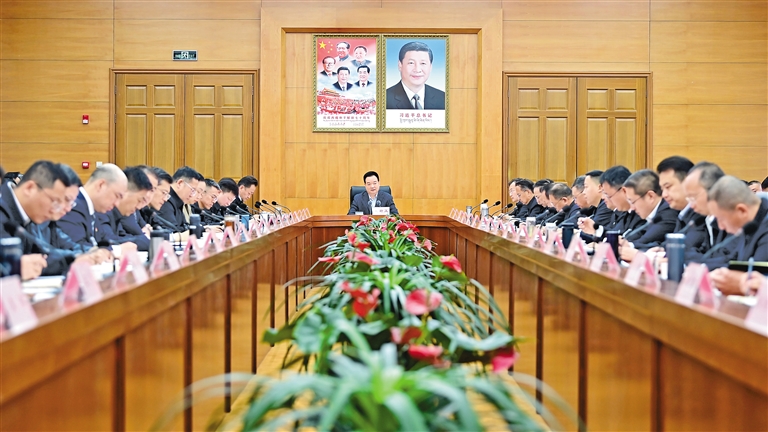 4月8日,自治区党委书记王君正主持召开全区援藏干部座谈会。 本报记者 旦增西旦 摄