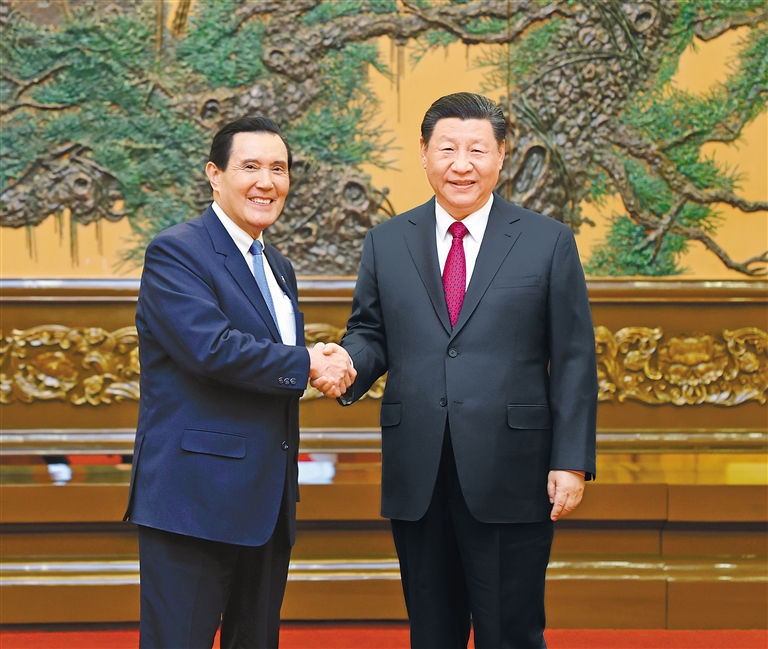 马英九表示,坚持“九二共识”、反对“台独”,是两岸关系和平发展的共同政治基础。两岸人民同属中华民族、都是炎黄子孙,应深化交流合作,共同传承中华文化,提升两岸同胞福祉,携手前行,致力振兴中华。