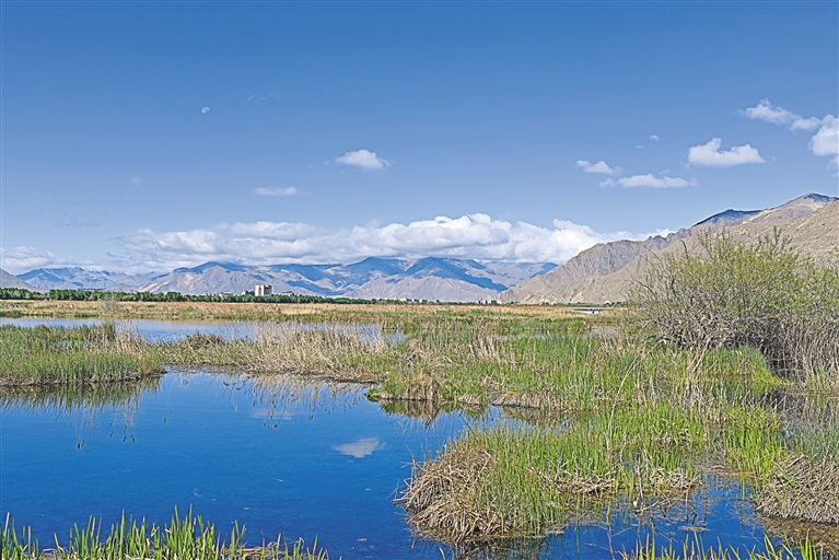 图为水草丰美的拉鲁湿地一角。本报记者 潘多 摄