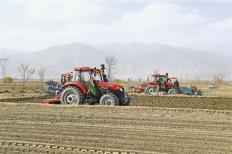 图为扎囊县扎其乡孟卡荣村村民利用大型农机进行春耕。本报记者 李洲 摄
