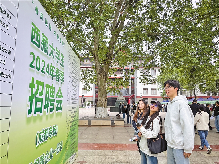 就业,是莘莘学子迈向社会的第一步。为进一步落实好自治区党委、政府关于稳就业保民生工作部署,促进重点群体,特别是高校毕业生高质量充分就业,区人社厅联合区政府驻成都办事处、西南民族大学、拉萨市人社局、山南市人社局成立专班,于4月8日、9日赴四川省成都市,在西南民族大学武侯校区举办“春风送岗 才聚西藏”西藏大学生2024年春季就业创业系列活动(成都专场),给高校毕业生提供更加精准的职业指导,帮助他们进一步转变就业观念,理清就业思路,促进高校毕业生实现高质量充分就业。