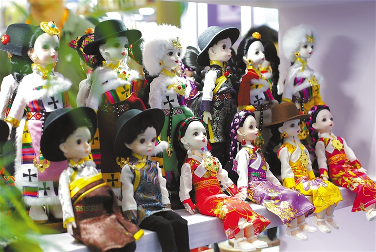 在国货特色潮品展区西藏展台拍摄的人偶。新华社记者 田薇薇 摄