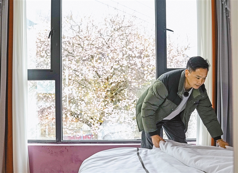 位于林芝市波密县倾多镇古通村的桃花谷,是游客们赏花的热门打卡地。洛松顿珠在村里开起了藏家民宿。洛松顿珠是“90后”,22岁从云南退伍回到家乡后,曾从事松茸、药材生意。