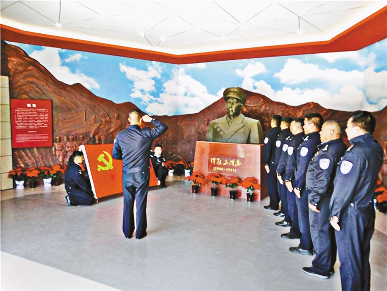 图为主题党日活动中,支队党员重温入党誓词。本报记者 鹿丽娟 摄
