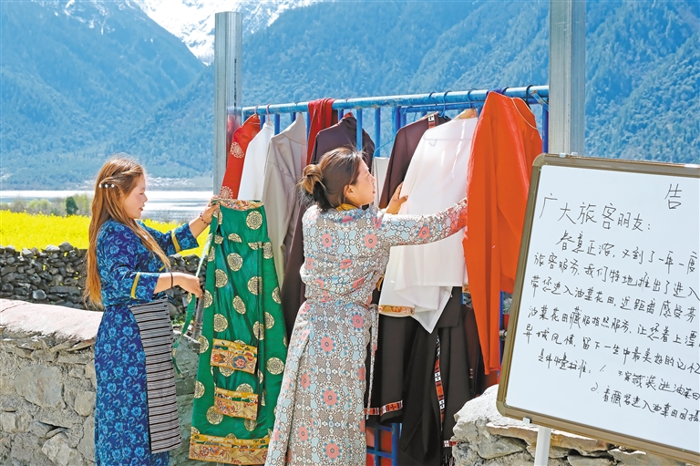 如今,油菜花种植不仅带动了通加村的“赏花经济”,开民宿、租藏装、压榨菜籽油、制作油菜花蜜等更是让村民们走上了致富路。