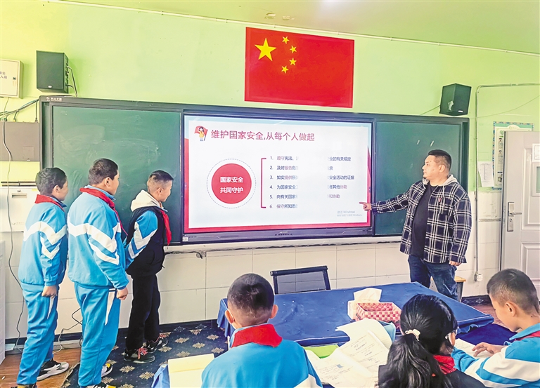 图为在拉萨市第三小学,老师向学生讲解如何在日常生活中维护国家安全。 胡舟 本报记者 次仁平措 摄