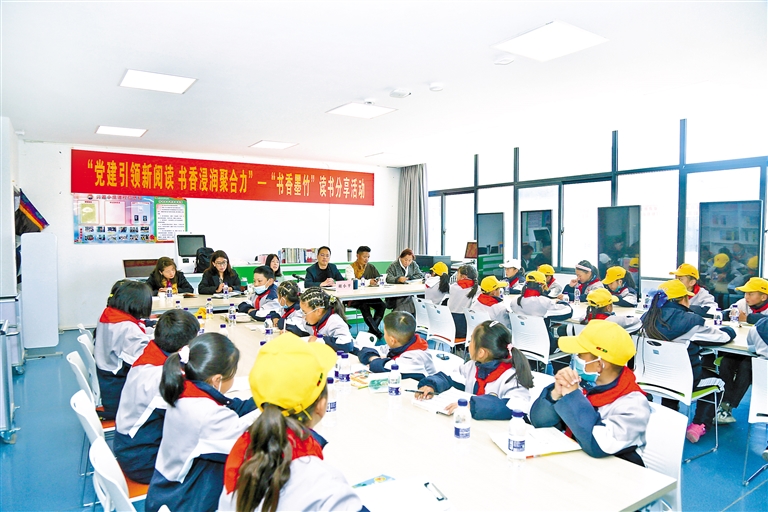 在墨竹工卡县南京实验小学,由拉萨市墨竹工卡县委宣传部举办的“党建引领新阅读 书香浸润聚合力”——“书香墨竹”读书分享活动举行,读书爱好者们一同交流读书的乐趣,分享读书心得。同时,自治区文联作协会员李玉萍向墨竹工卡县委宣传部和墨竹工卡县南京实验小学赠送了书籍。