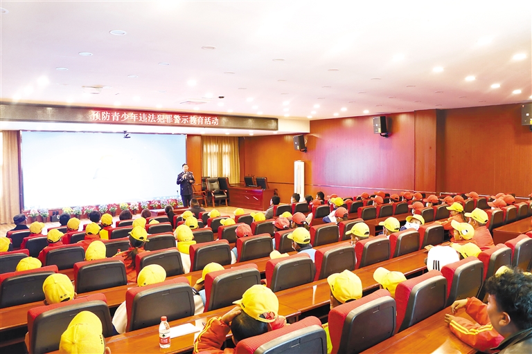 图为相关工作人员在为青少年进行警示教育。
