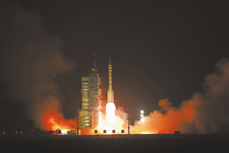自空间站建造任务启动以来,长征二号F运载火箭进入常态化、快节奏发射状态。将航天员又快又稳送入太空,体现了火箭的高效。