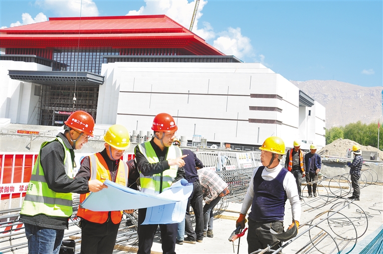 五月的第一天,日光城破晓,西藏革命建设改革纪念馆南广场暨地下停车场项目建设现场已是一派热火朝天的施工景象:旋挖钻机、挖掘机、吊车等施工车辆往来穿梭,各种机械设备轰鸣声此起彼伏,焊花飞溅、弧光闪闪,上百名建设者们在工地上挥汗奋战、干劲十足。