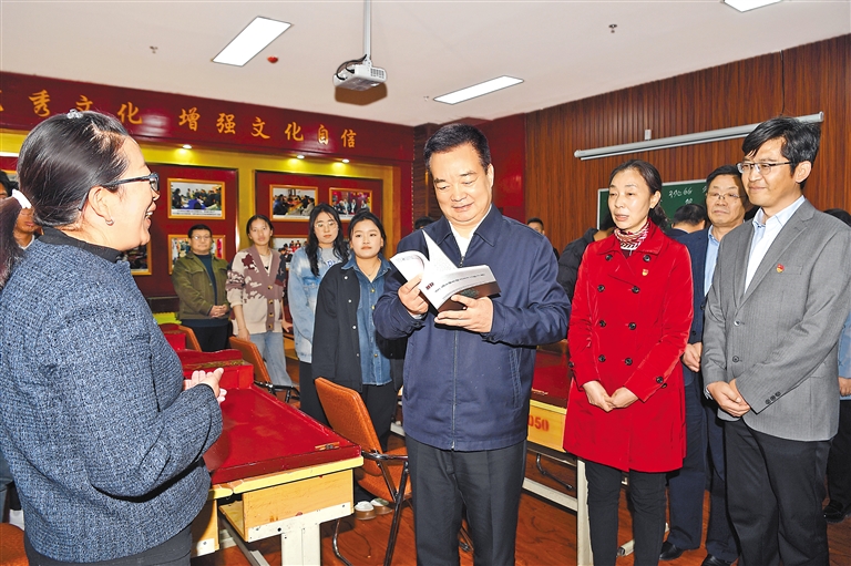 调研中,王君正指出,师范院校承担着为中小学培养师资的重任,责任艰巨、使命光荣。要坚持正确办学方向,自觉用习近平新时代中国特色社会主义思想指导学校建设办学实践,坚持不懈用马克思主义中国化最新成果武装广大师生头脑。(下转第二版)(紧接第一版) 坚持立德树人根本任务,围绕为党育人、为国育才,遵循教育规律和人才成长规律,努力培养德智体美劳全面发展的社会主义建设者和接班人。进一步加强师范教育体系建设,聚焦经济社会发展新任务,积极推进师范教育教学改革,突出需求导向,促进教育链与人才链、产业链、创新链深度融合,提高办学质量和办学效益。高度重视教师队伍建设,把师德师风建设摆在首要位置,提高教师培养培训质量,培养造就一支师德高尚、业务精湛、结构合理的高素质专业化教师队伍。