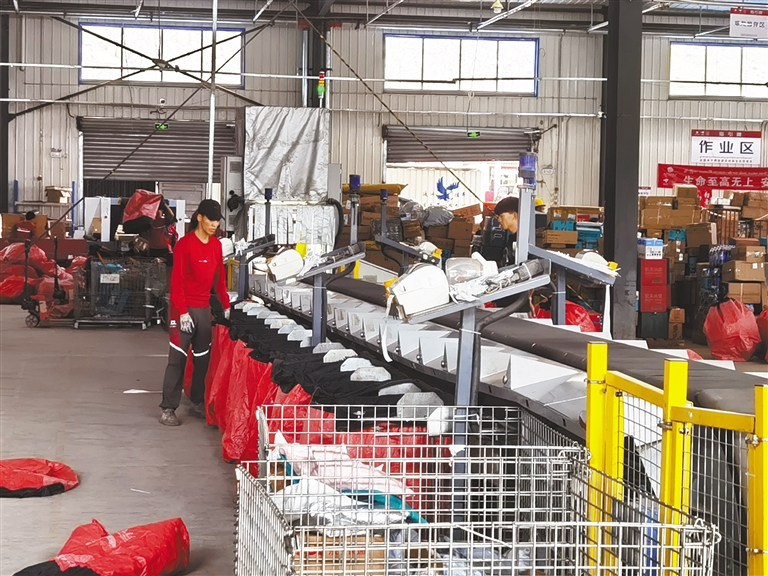 图②:5月1日,拉萨城投物流园京东物流的工作人员在分装包裹。本报记者 蒋盖 摄