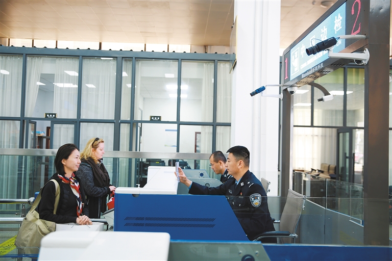 图①:五一”假期,吉隆出入境边防检查站民警在验放出境旅客。本报通讯员 肖富贵 本报记者 旦增兰泽 摄
