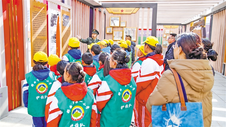 图为那曲市市直中小学师生代表来到那曲军分区军史文化长廊,观看红色展陈、聆听战斗故事。 黄世杰 本报记者 万靖 摄