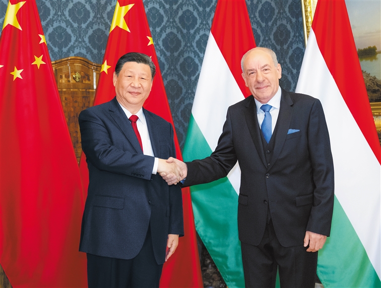 习近平强调,中国正在以中国式现代化全面推进强国建设、民族复兴伟业,这将给世界带来巨大机遇。中方欢迎匈牙利朋友搭乘中国式现代化的发展快车,愿同匈方继续深化政治互信,推动中国式现代化同匈牙利“向东开放”战略更紧密对接,深挖务实合作潜力,持续扩大各领域交流。中方愿同匈方继续引领共建“一带一路”合作和中国-中东欧国家合作正确方向,推动合作走深走实。希望匈方以今年下半年担任欧盟轮值主席国为契机,推动中欧关系平稳健康发展。